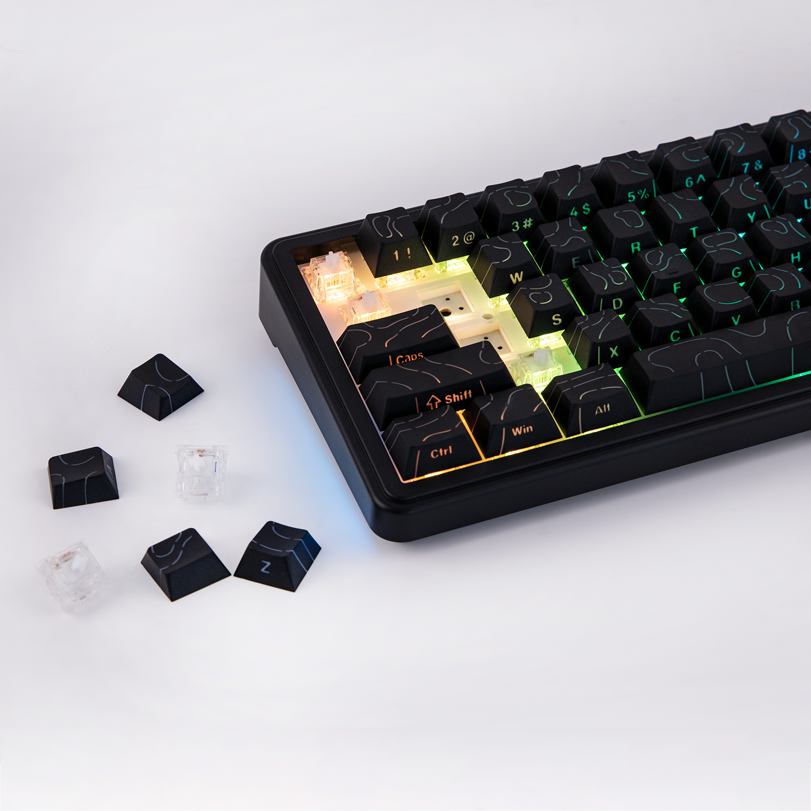 Draw from the predecessor Aula F65 with creamy sound and compact size, the F65 PRO features an tri-functional knob and the innovative top-printed shine-through keycaps with topographic lines. Designed for those who demand peak performance and personalized perfection in compact, travel-ready size, the F65 PRO features hot-swappable pre-lubed switches, sound-dampened Gasket structure, programmable keys and RGB, and a 4000mah battery for versatile setup. Revel in the premium sound and responsive feel of this 0.8kg portable peripheral, as this customizable command center light up your desk with precision and brilliance.