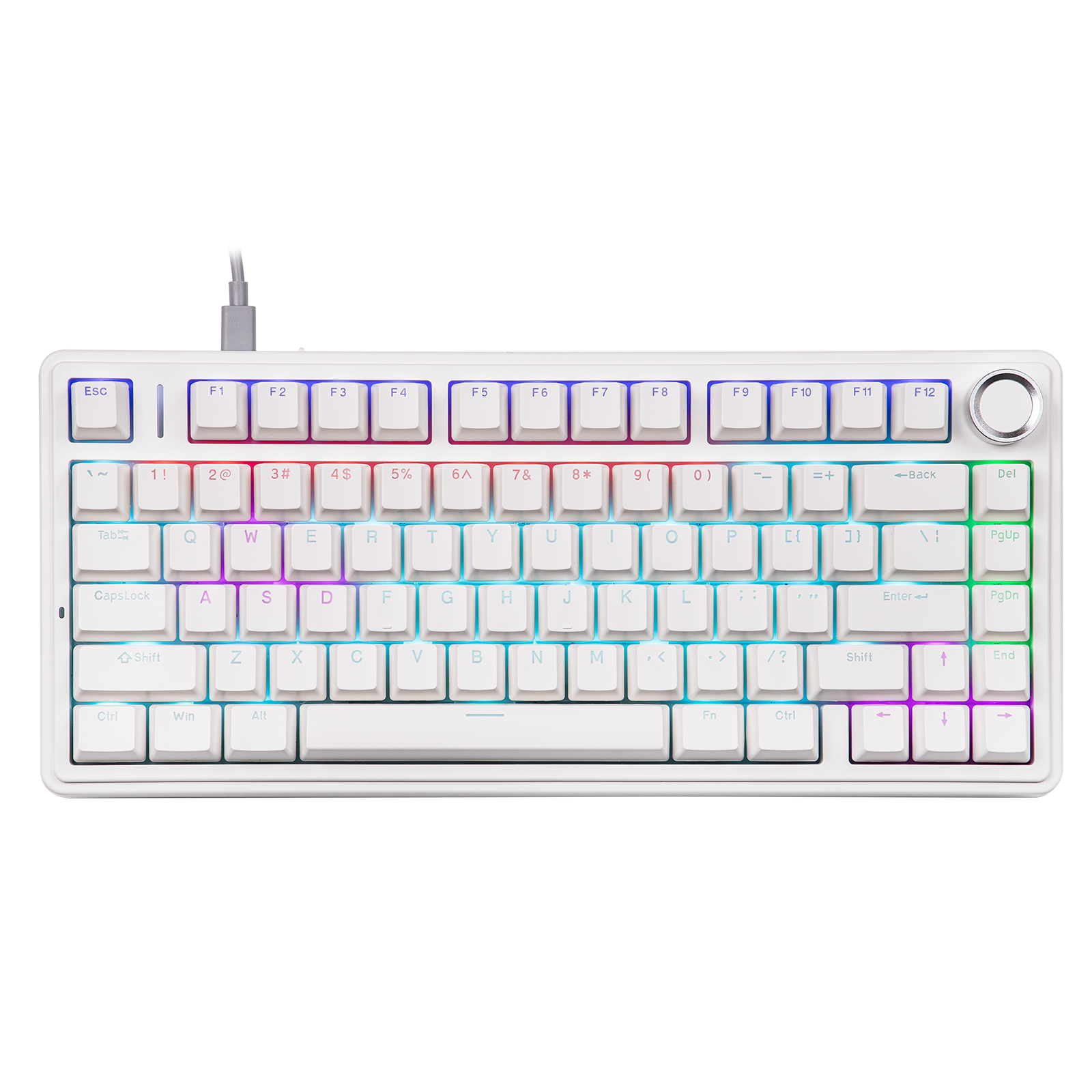 The F75 Wired Mechanical Keyboard features a compact 80-key, 75% layout that maximizes your desk space while keeping all essential keys within easy reach. The added knob offers quick and convenient control for volume adjustments or media playback, allowing for a seamless user experience whether you're typing, gaming, or listening to music.